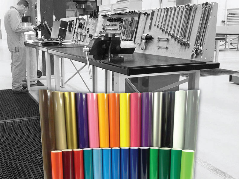 Qty 1 – 610mm wide x 5 metres long of high quality self adhesive tool shadow board vinyl roll. 39 colours to choose from.