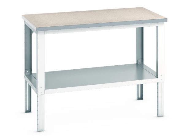 Bott Heavy Duty Workshop Workbench – Workbenches Heavy Duty adj height (lino) with half depth shelf.WxDxH: 1500x750x740-1140mm Heavy Duty Industrial Workbench RAL 7035_SKU-41003123.16V